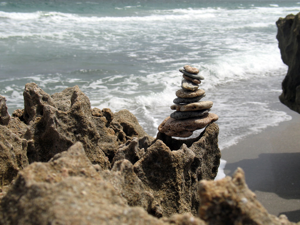 I spent a few days last week at a friend's house on Hutchinson Island, where I indulged my artistic side by stacking stones and shells on beach rocks after the manner (at least in my own small way) of Andy Goldsworthy. Hopefully somebody enjoyed it before the tide came in!